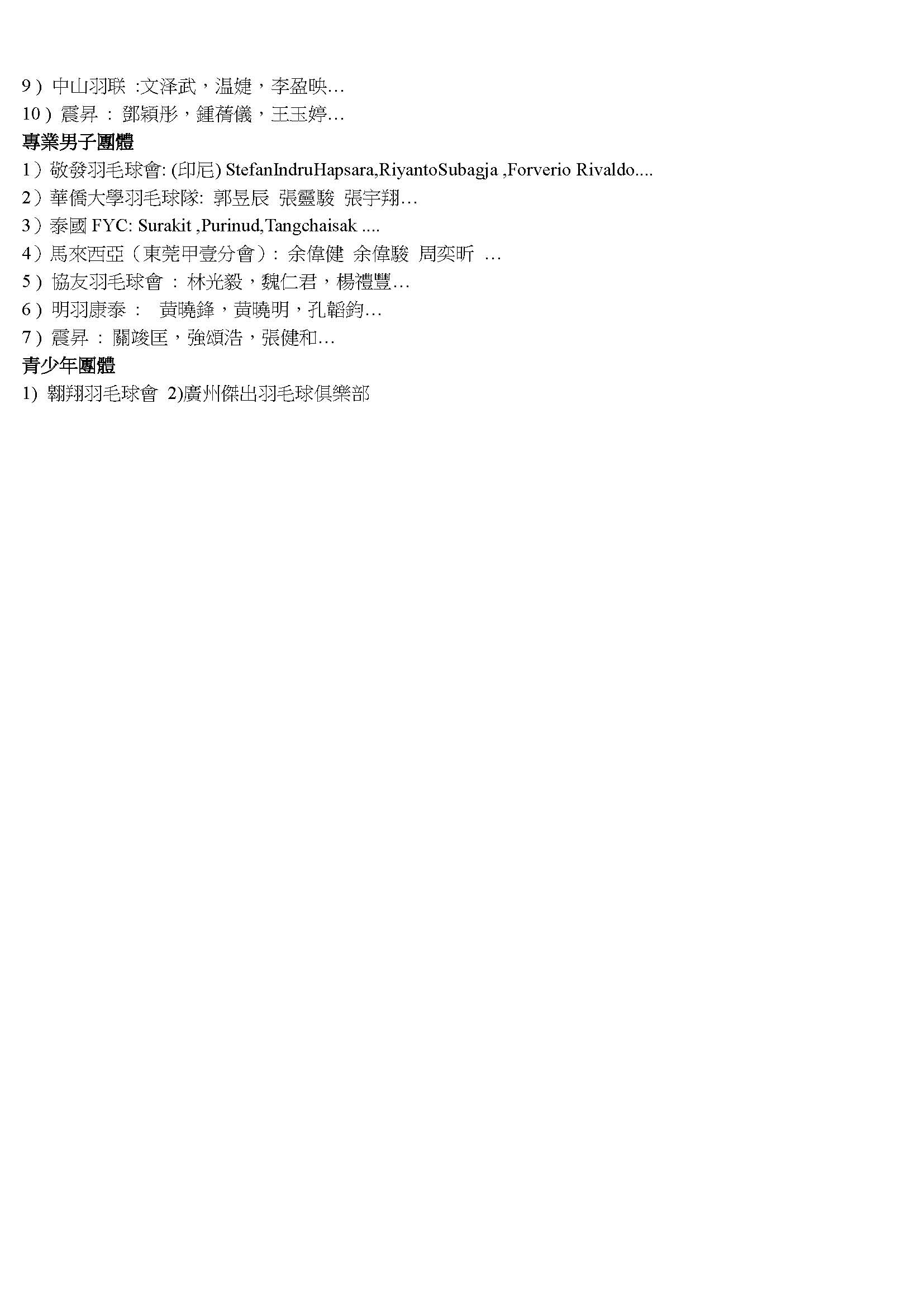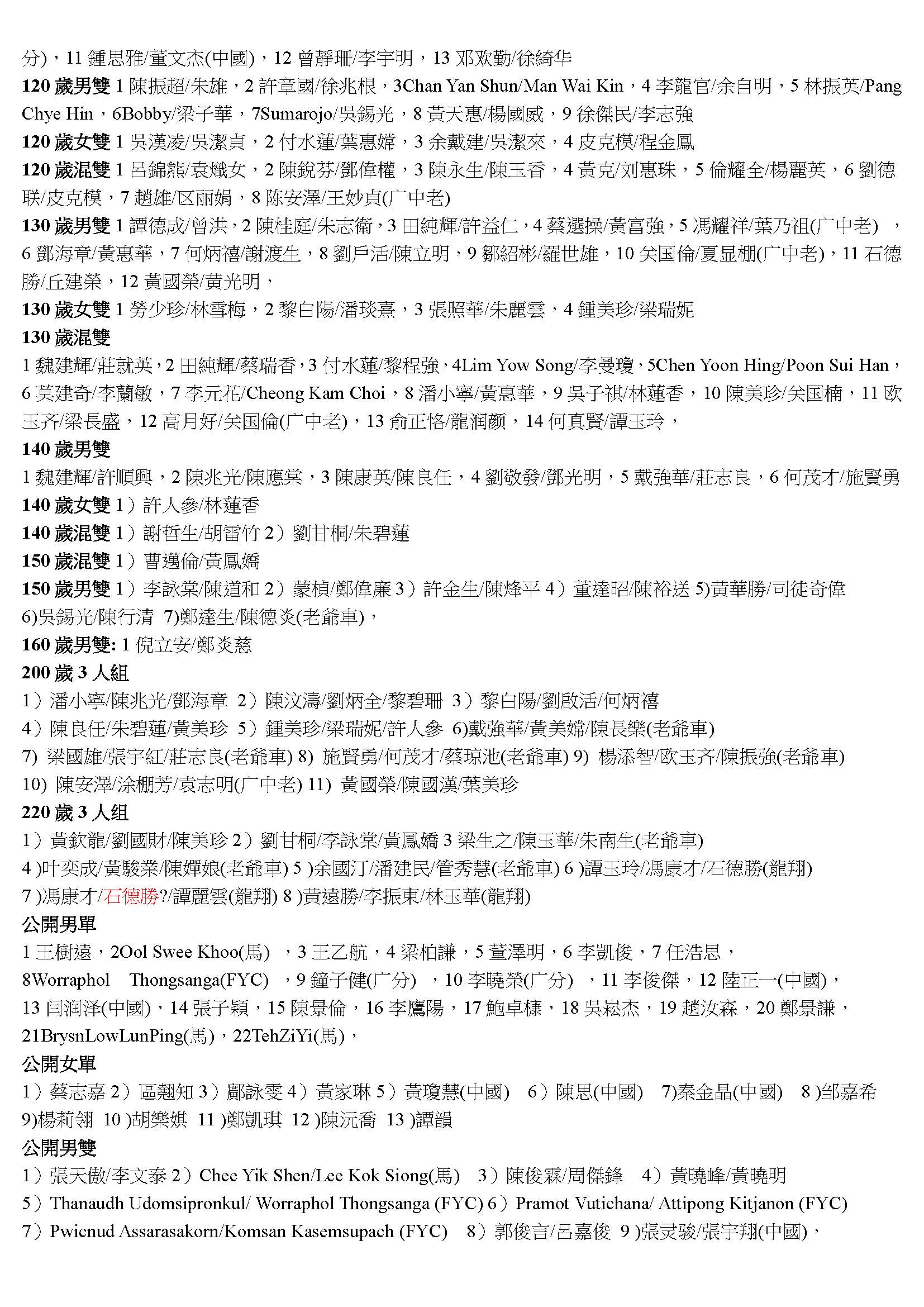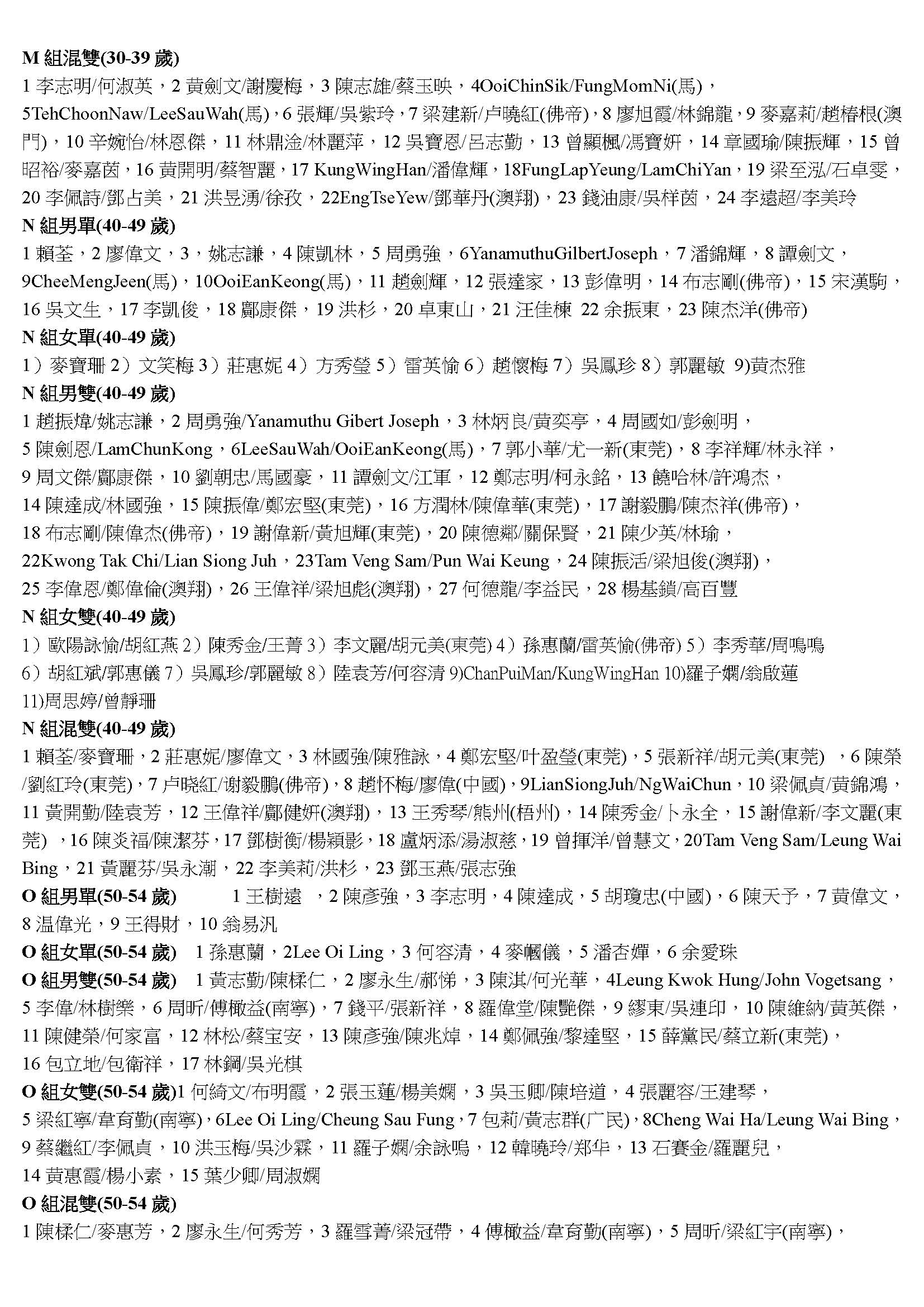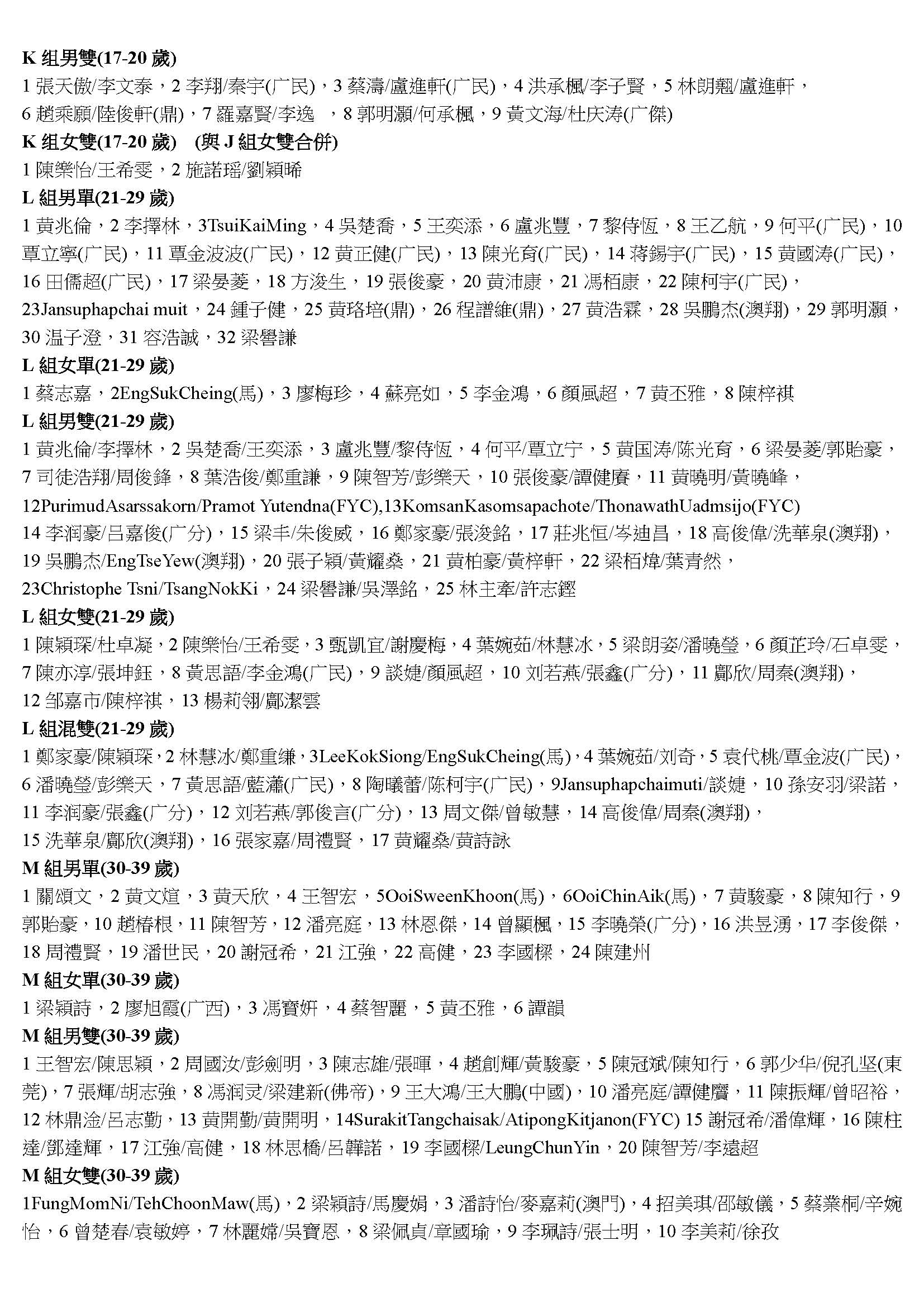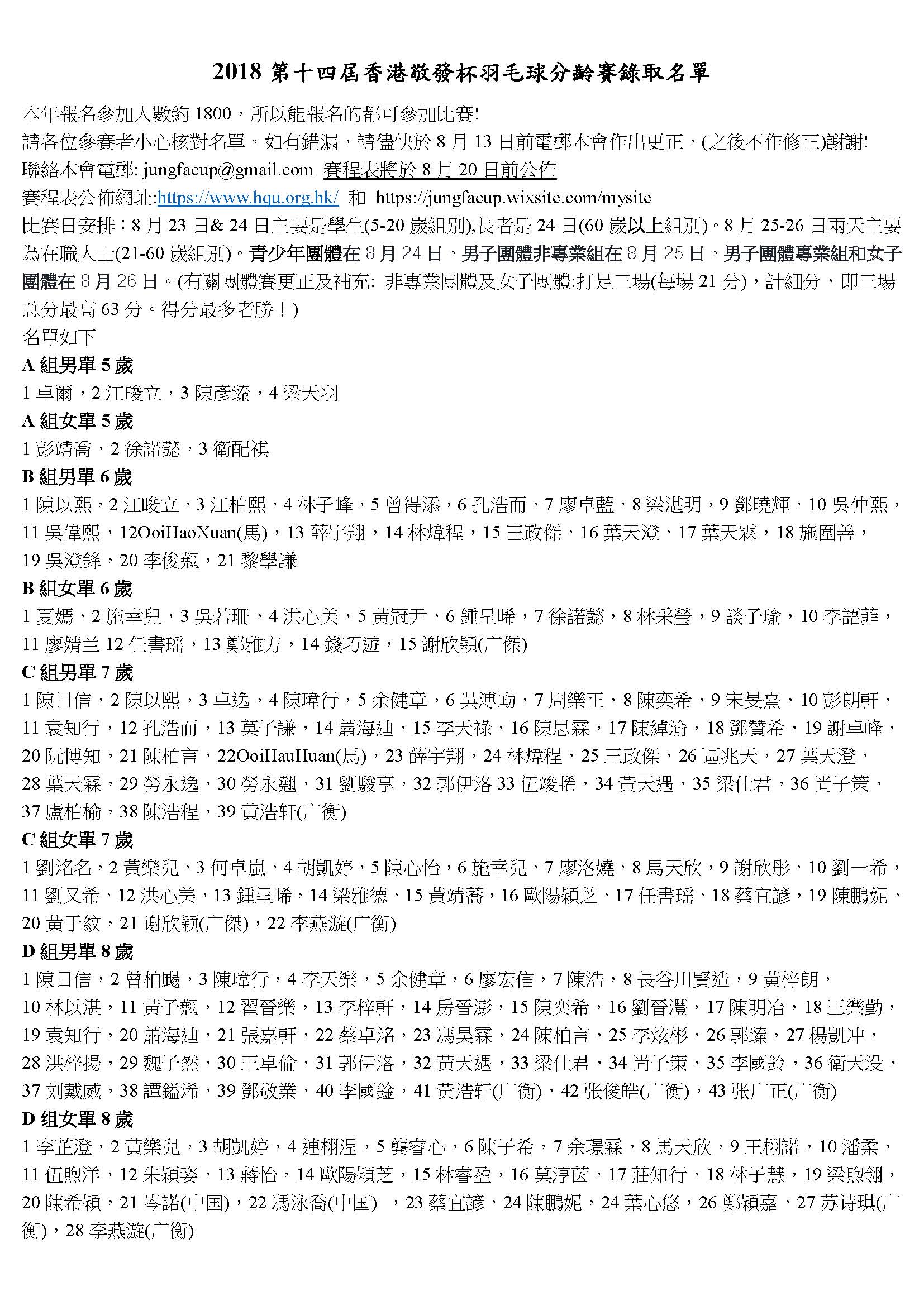 2018敬發盃羽毛球比賽取錄名單1